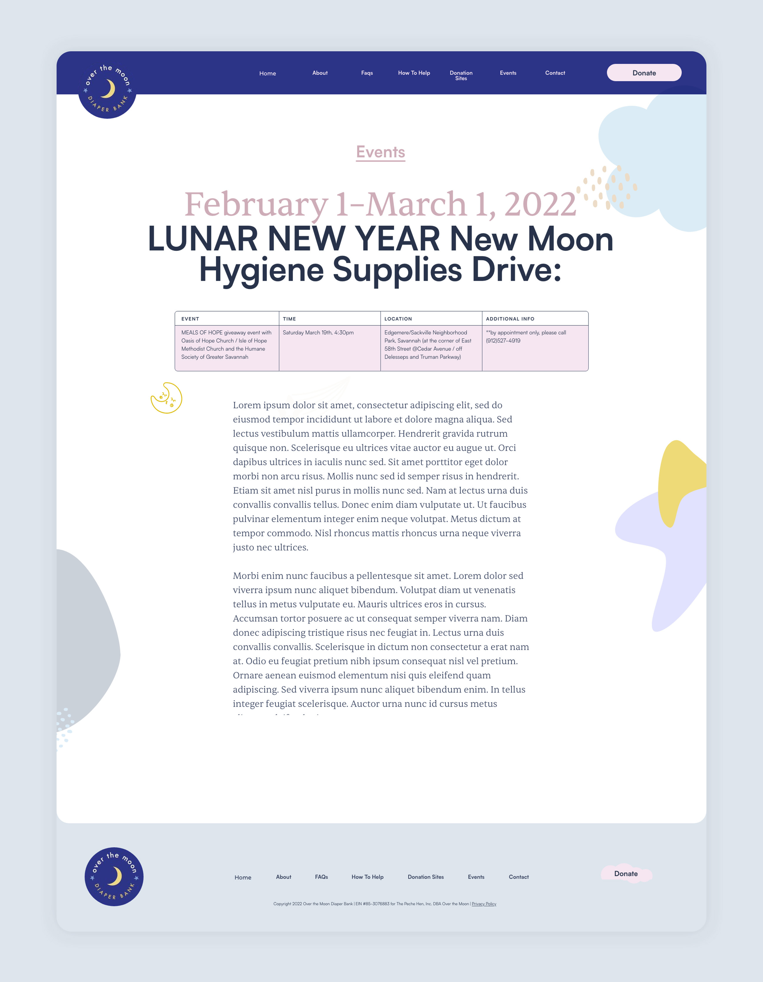 Over The Moon is the diaper & period supply bank for Savannah and Coastal Georgia. We helped design and develop a bespoke website to promote this wonderful cause.