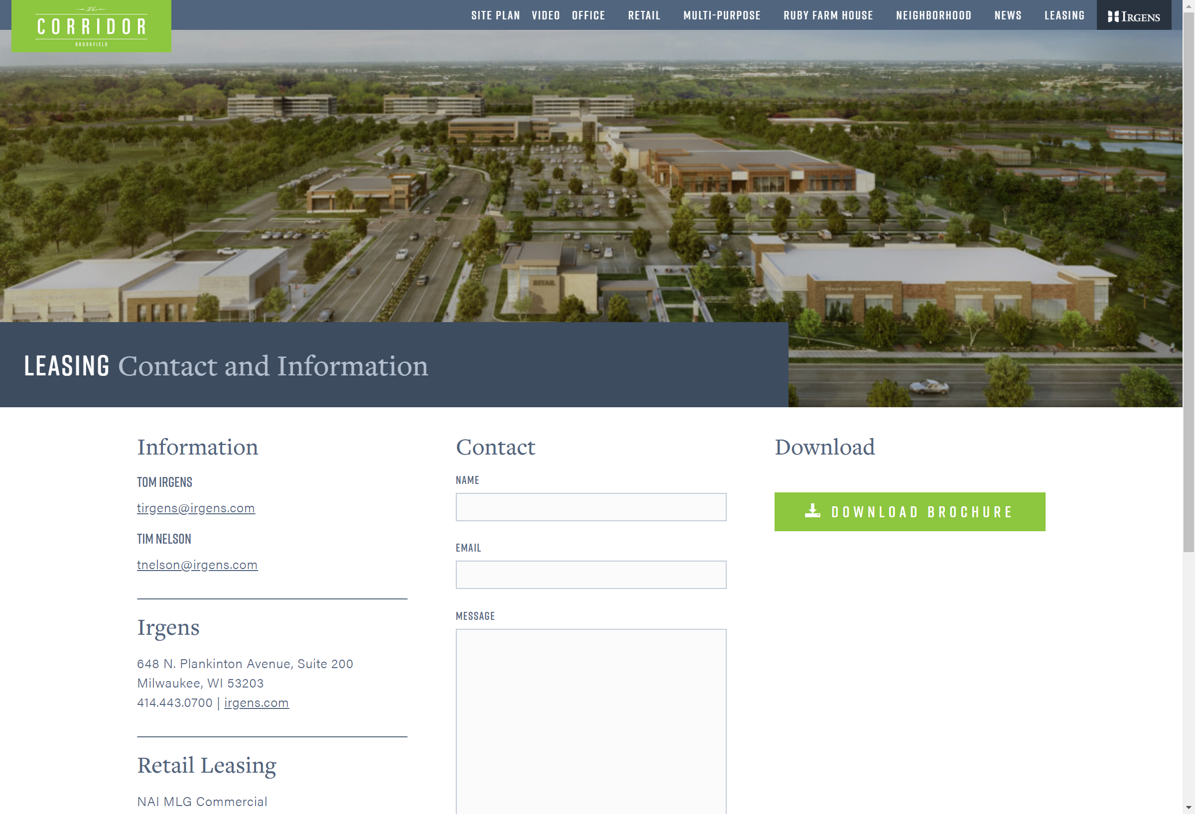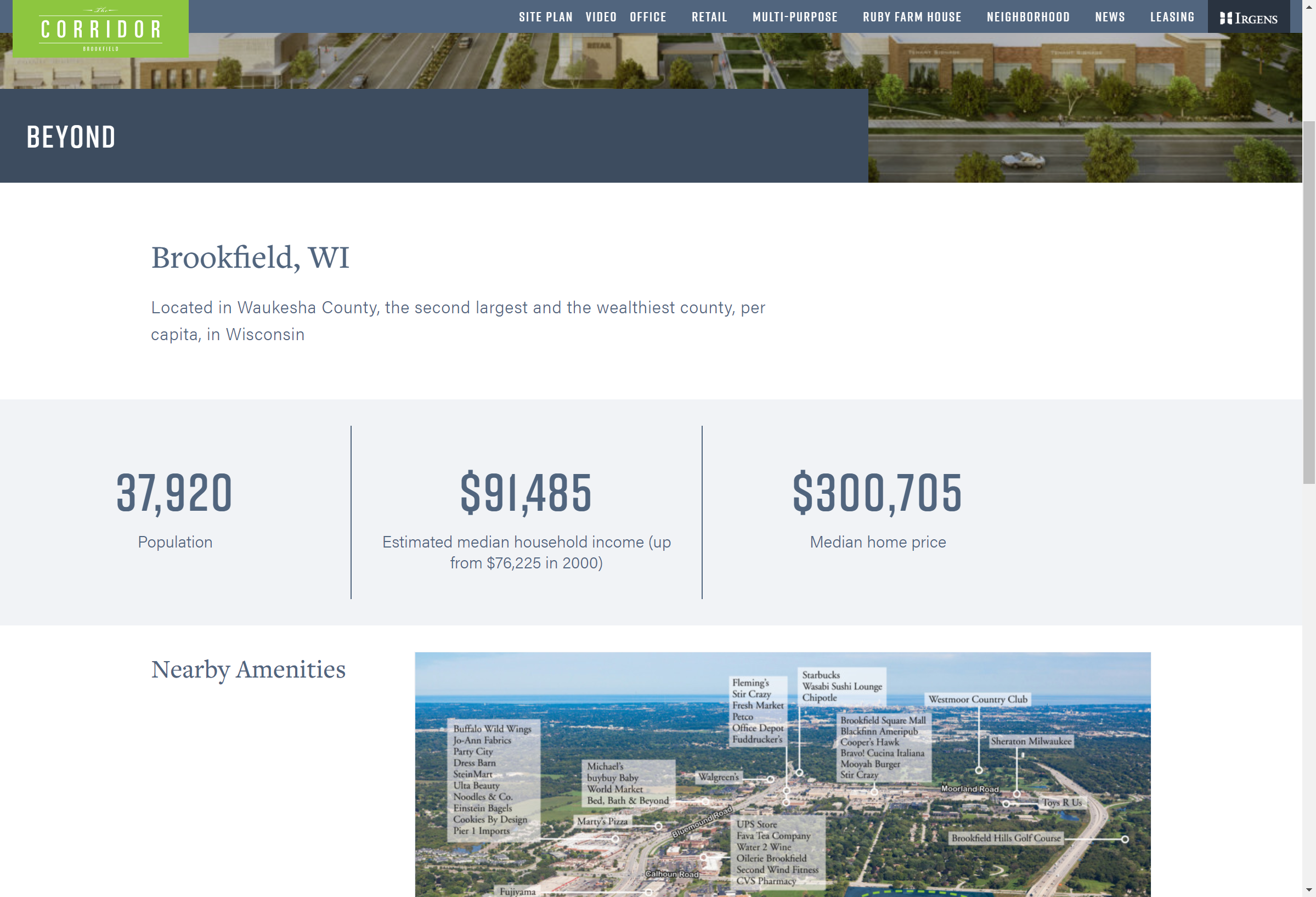 The Corridor Brookfield is a mixed multi-use development in Brookfield, Wisconsin. We created a custom website to promote the space.